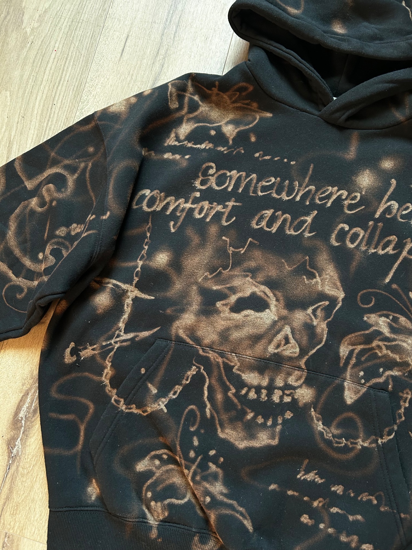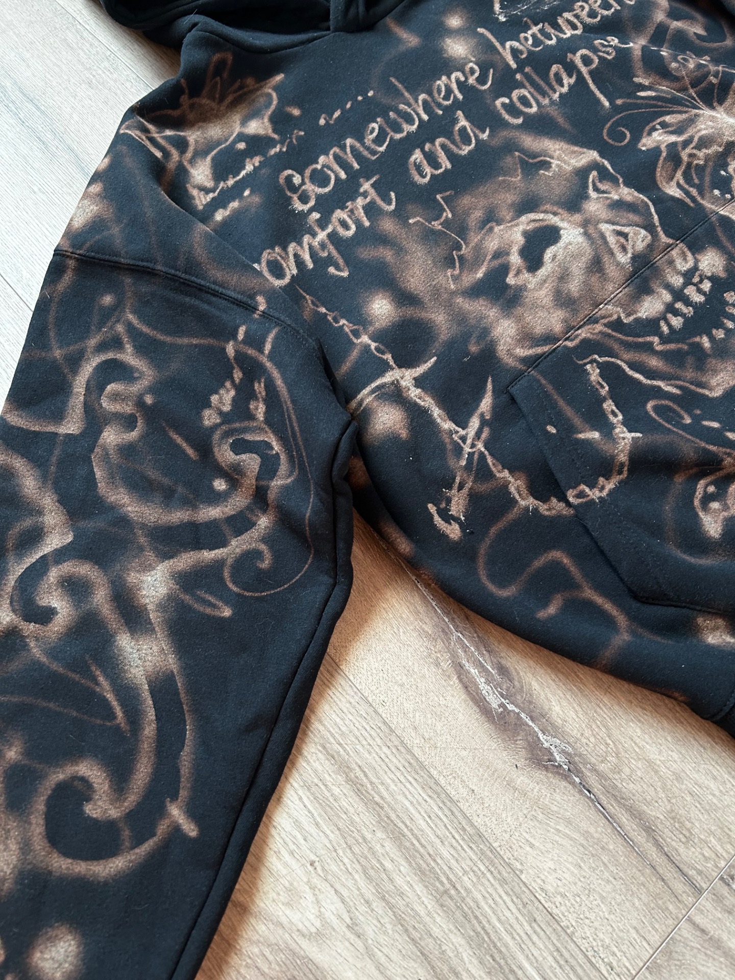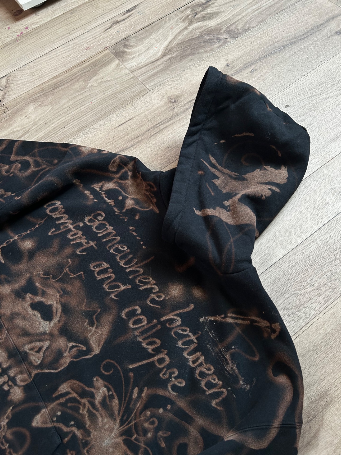 Comfort/Collapse HOODIE je mikina s kapucí a klokaní kapsou, celá ručně pomalovaná savem - metodou airbrushe.