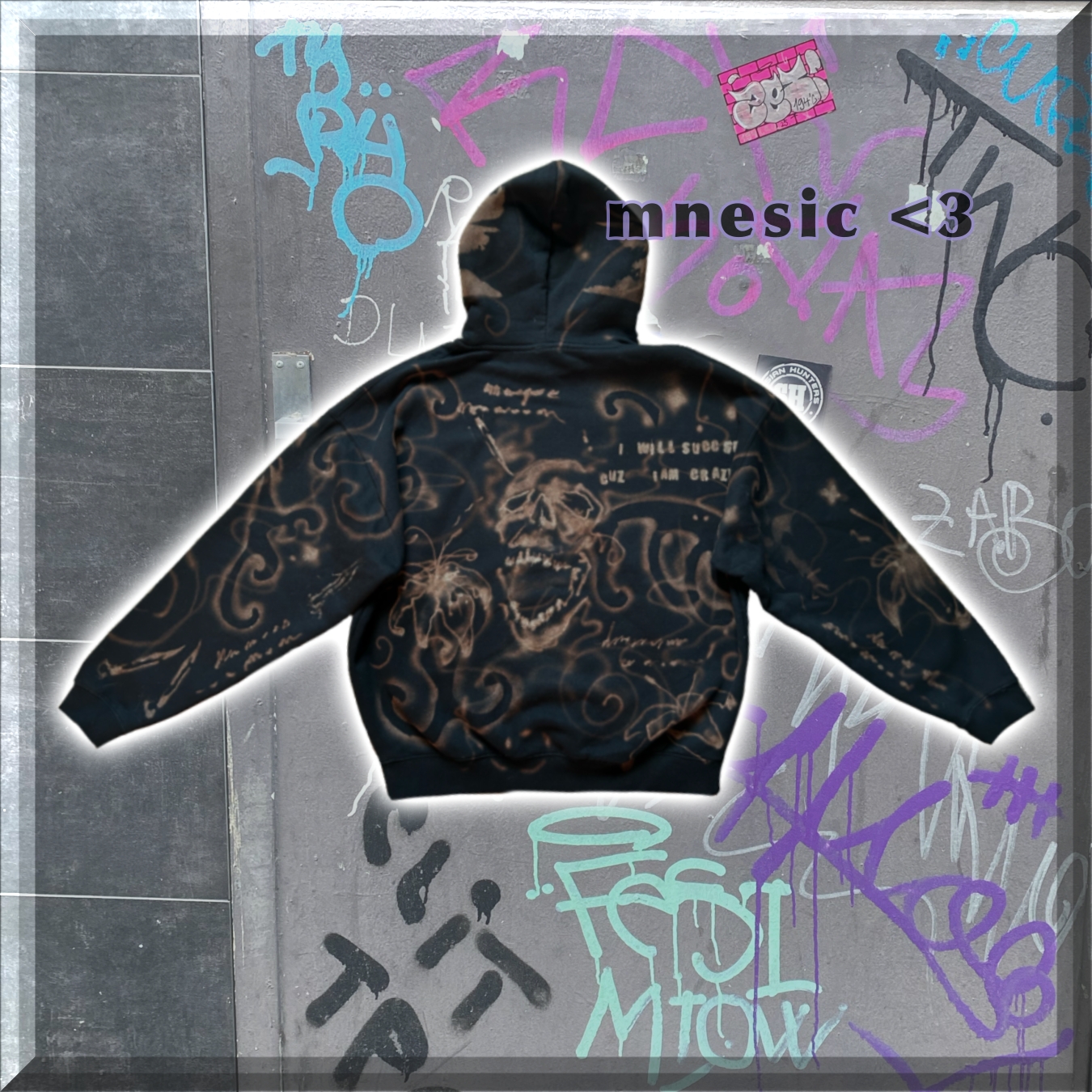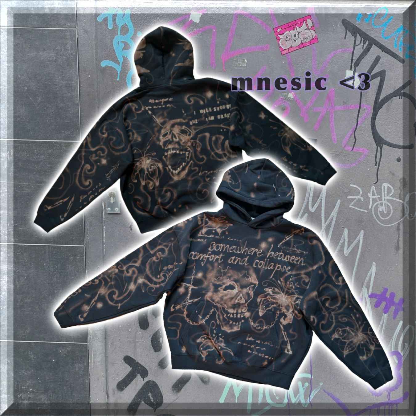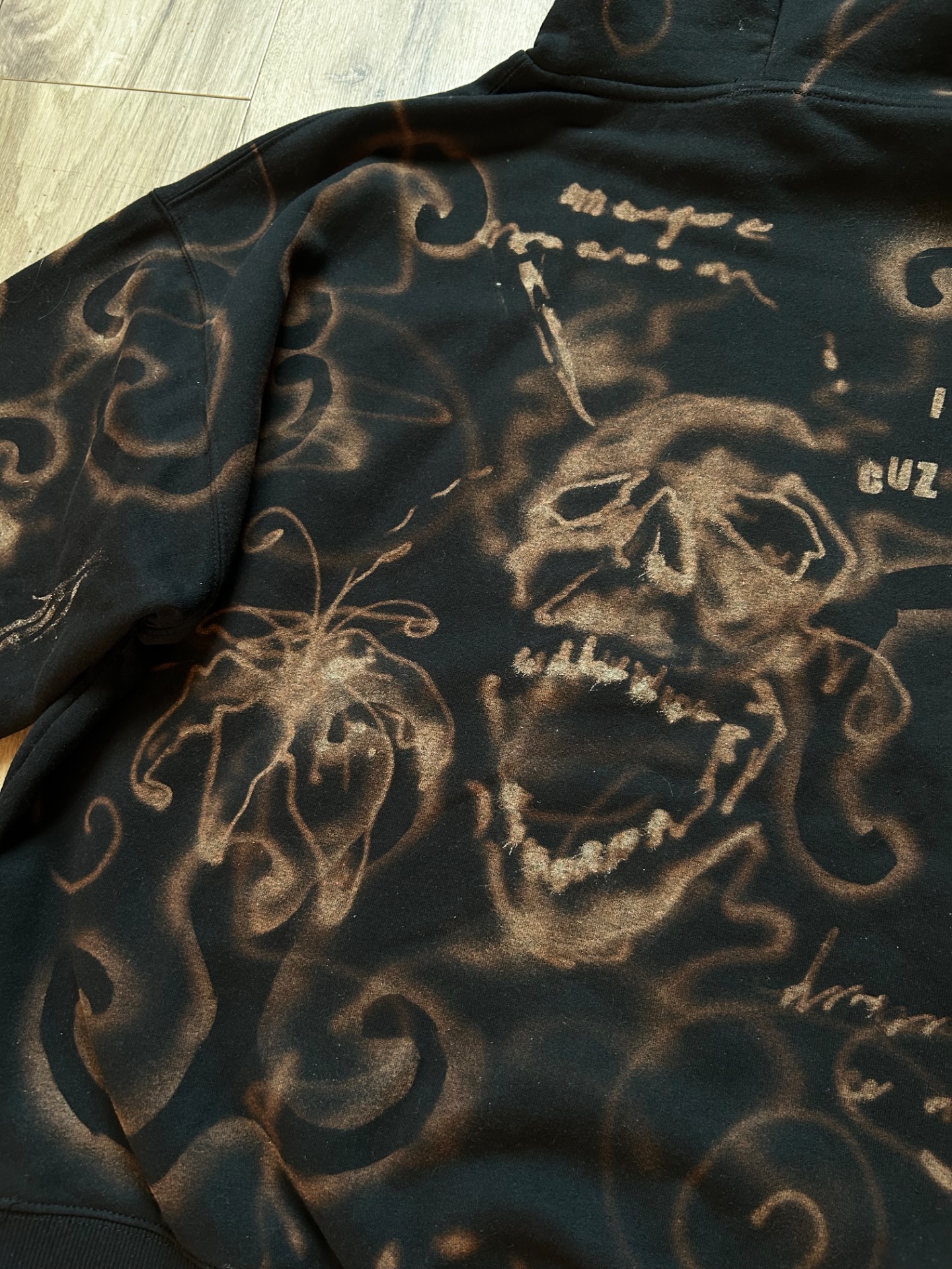 Comfort/Collapse HOODIE je mikina s kapucí a klokaní kapsou, celá ručně pomalovaná savem - metodou airbrushe.